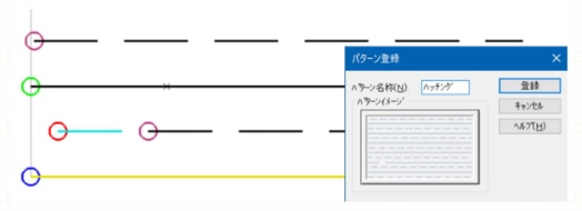 今回は、線分と破線が交互になるパターンを作成しますが、パターンハッチングは「実線のみ」利用可能ですので、長い線分と短い線分を作成し、この短い線分を破線のように表現するよう登録します。
