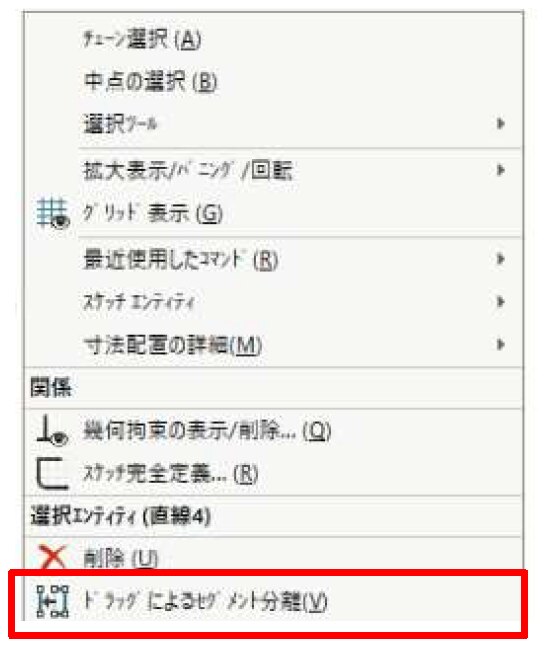 - 分離モードになったままの為、右クリック-ドラッグによるセグメント分離をクリックし、機能をオフにします。
