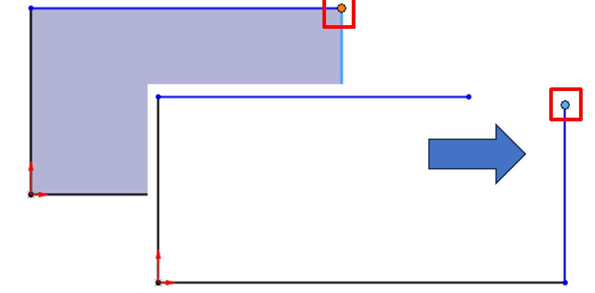 スケッチエンティティにて、端点をドラッグし添付先のエンティティから分離する事が可能です。(マージ・一致拘束が適用されている場合は分離できません)