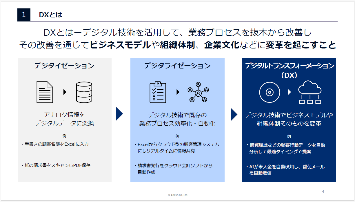 DXの定義や必要な背景といった基本情報に加え、中小企業のDXがなぜ進みづらいかを整理した資料です。